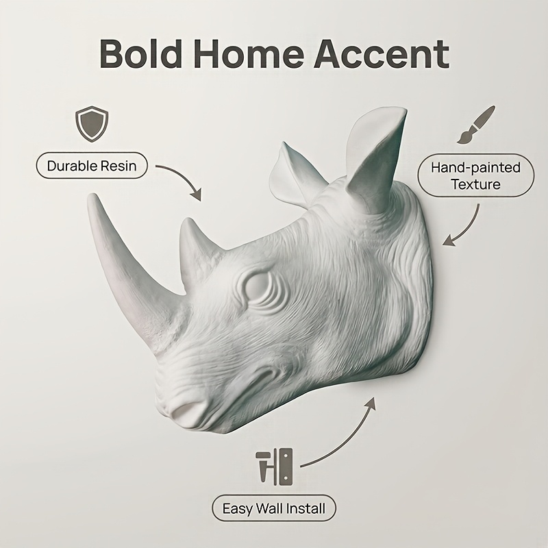 [2D Flat] Rhino Wall Hanging | Classic European Style Animal Wall Decor, Plastic, Wall Mount, Suitable for Home Office