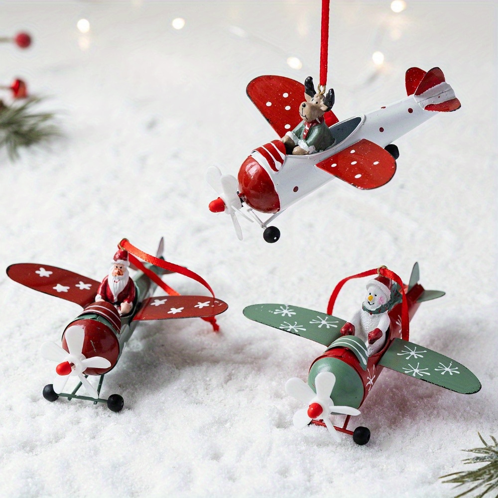 1pc Festive Christmas Airplane Ornament - Resin & Metal Hanging Decoration with Santa, Snowman, and Reindeer - Ideal for Holiday Tree, Party, and New Year Celebrations - No Power Needed, Easy to Hang, Christmas Decorations